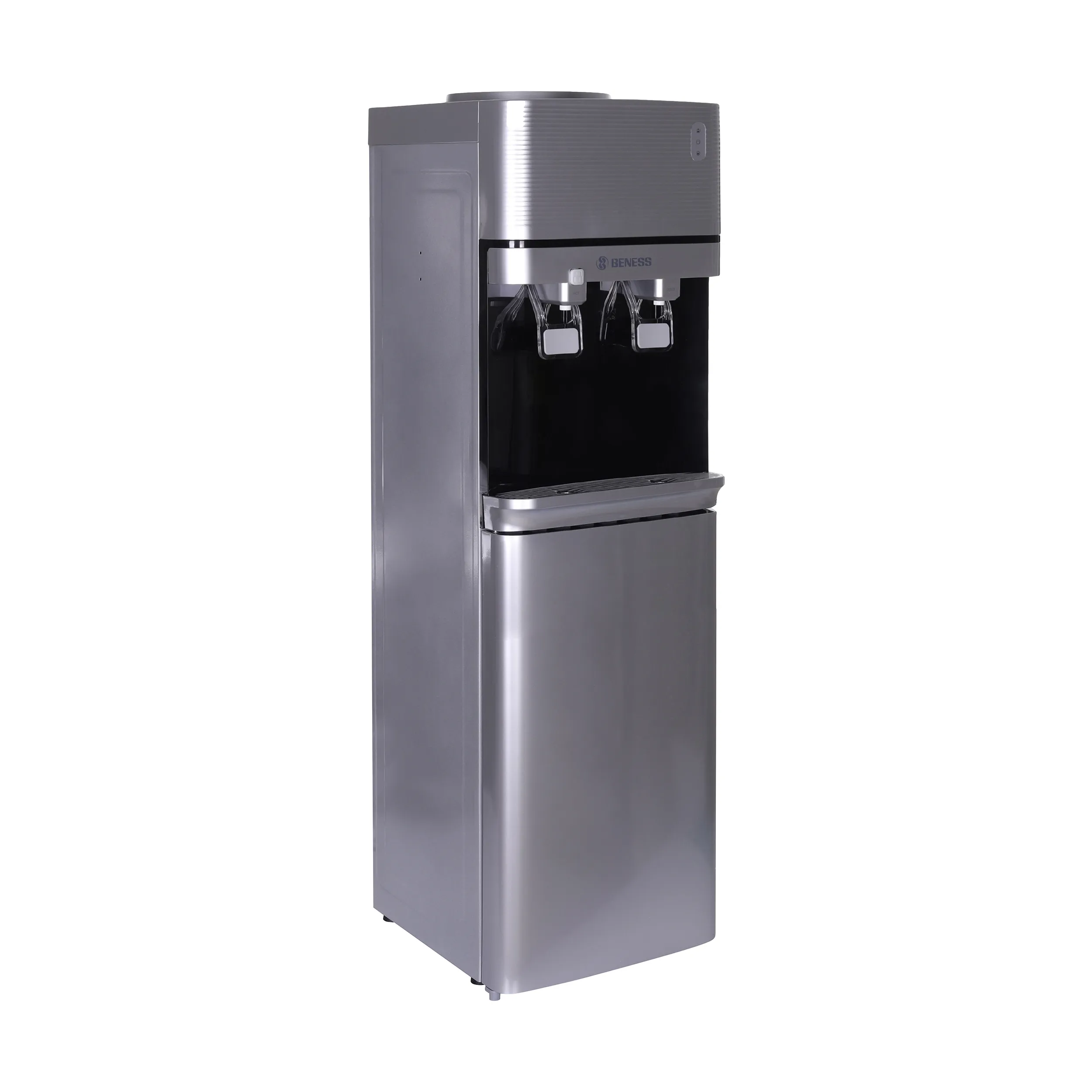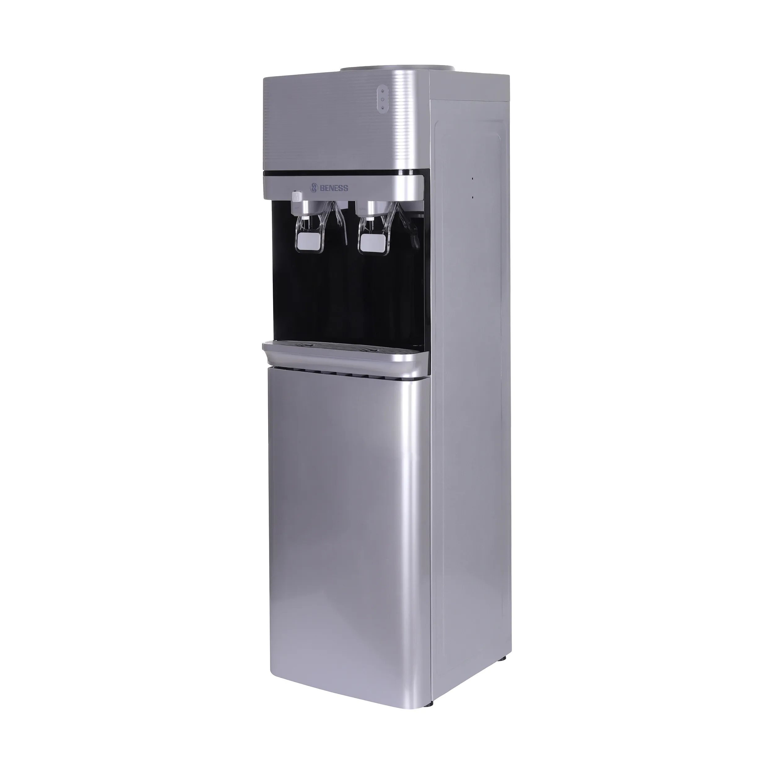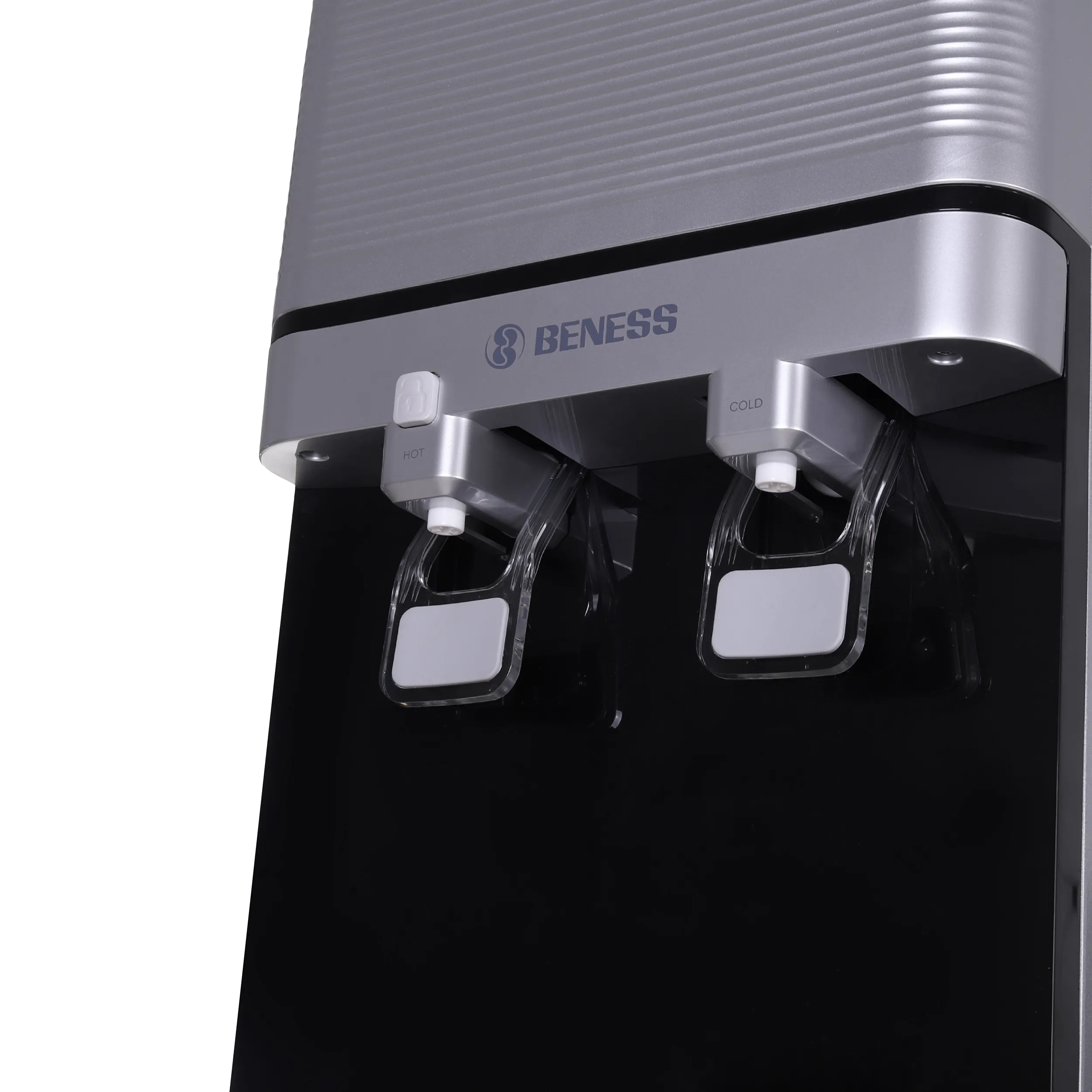 همان طور که اشاره کردیم بارزترین ویژگی آبسردکن بنس مدل BW-S644 این است که علاوه بر قابلیت سرد کردن آب، قابلیت ارائهی آب گرم را نیز به طور همزمان دارد. در قسمت میانی این دستگاه دو پدال برای بخش آبریز دستگاه تعبیه شده است. یکی از این دو پدال مخصوص خروج آب سرد و دیگری برای دسترسی به آب گرم قرار داده شده است. گرچه نمیتوان این دستگاه را به سیستم آب شهری وصل کرد، اما سری منبع آب آن در قسمت بالایی دستگاه قرار دارد. از همین رو میتوان به راحتی هرچه تمامتر مخزن دستگاه را پر از آب کرد. در ضمن باید اشاره کرد که این دستگاه فاقد سیستم تصفیهی آب است.