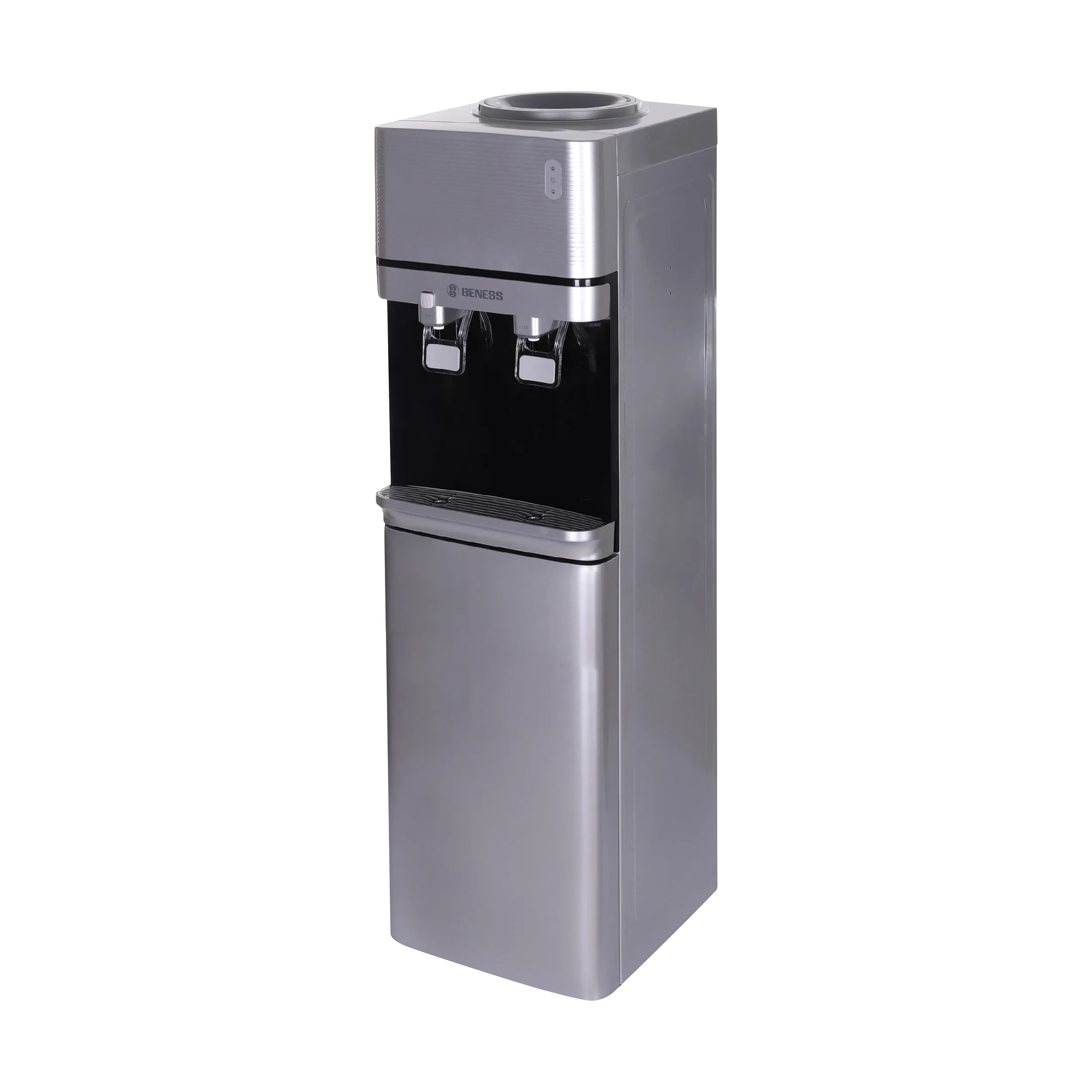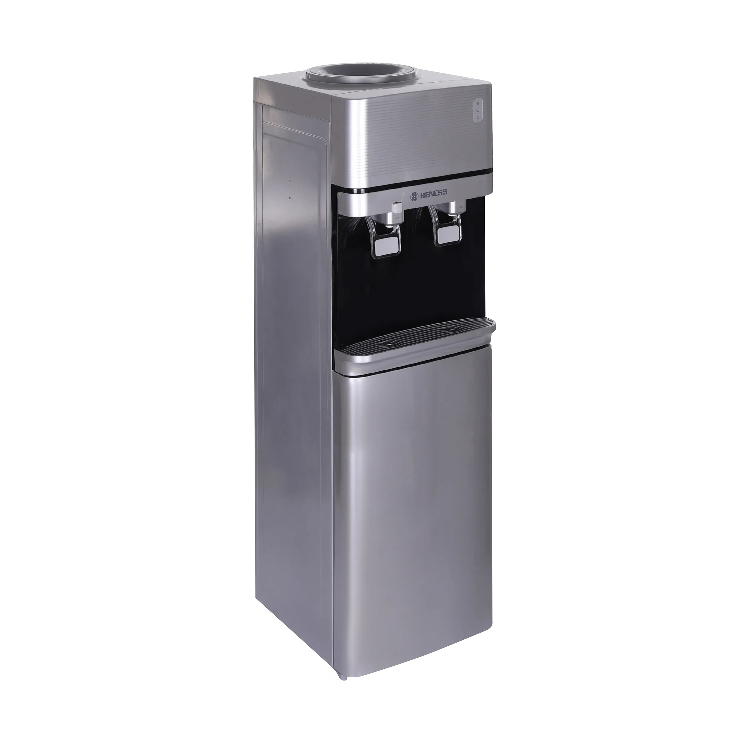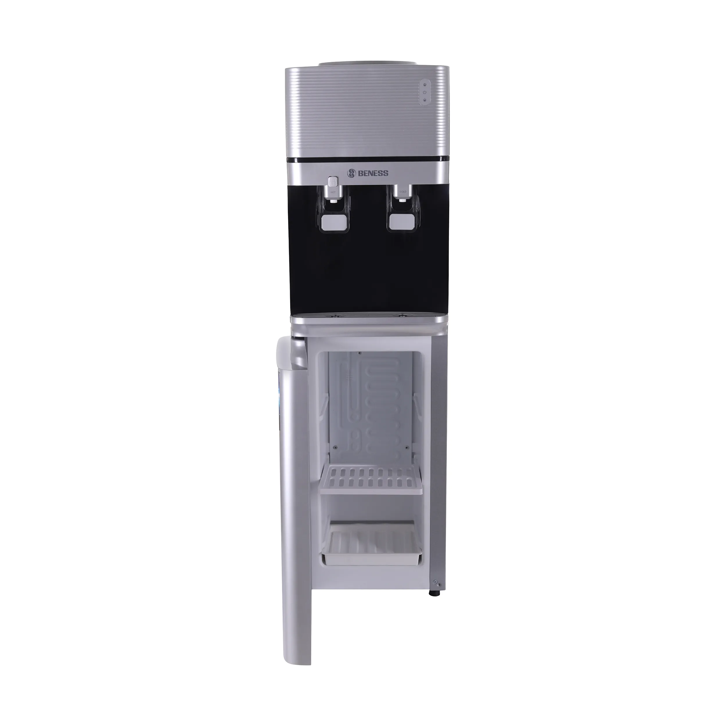همان طور که اشاره کردیم بارزترین ویژگی آبسردکن بنس مدل BW-S644 این است که علاوه بر قابلیت سرد کردن آب، قابلیت ارائهی آب گرم را نیز به طور همزمان دارد. در قسمت میانی این دستگاه دو پدال برای بخش آبریز دستگاه تعبیه شده است. یکی از این دو پدال مخصوص خروج آب سرد و دیگری برای دسترسی به آب گرم قرار داده شده است. گرچه نمیتوان این دستگاه را به سیستم آب شهری وصل کرد، اما سری منبع آب آن در قسمت بالایی دستگاه قرار دارد. از همین رو میتوان به راحتی هرچه تمامتر مخزن دستگاه را پر از آب کرد. در ضمن باید اشاره کرد که این دستگاه فاقد سیستم تصفیهی آب است.